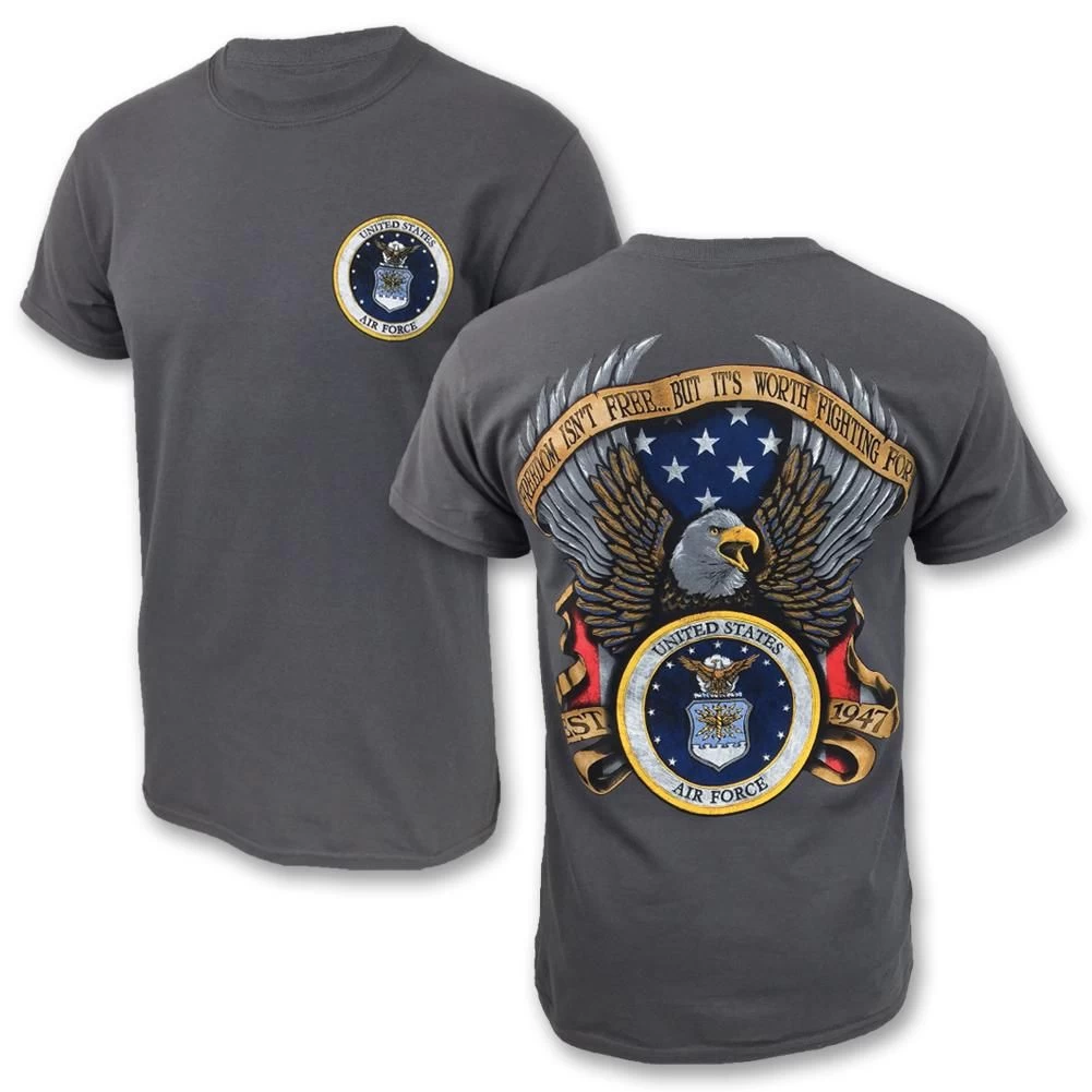 The Air Force Freedom Isn’t Free T-Shirt, is a comfy Air Force T-shirt made from 100% cotton and featuring 2-sided print.