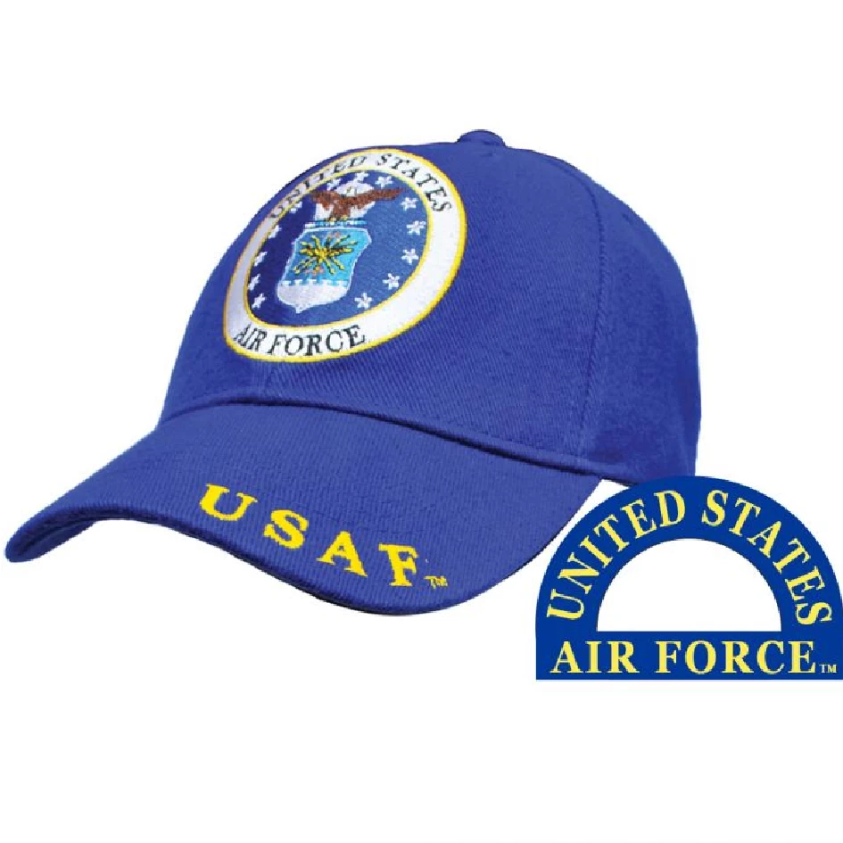 Air Force fbaseball cap has an embroidered USAF emblem fon the front of the hat with embroidery on the on the bill and back of the cap. This hat is one size fits all with an adjustable brass slide buckle. Excellent gift for yourself or that special someone. .
