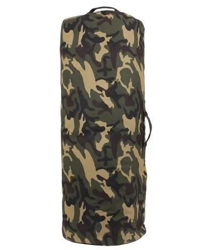 Here at army surplus world we carry a camo duffle bag. The camo duffle bag is a large duffle bag. The bag size is approx. 25” x 42” (laid flat). The camo duffle bag is a heavyweight canvas duffle bag. The camo duffle bag has a double reinforced top and side grab handles. There are also d-rings for a shoulder strap (sold separately). Order your camo duffel bag from army surplus world.