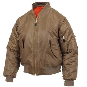 Army Surplus World’s coyote tan MA-1 Flight Jacket features a fully reversible rescue orange polyester lining, and a 100% nylon water repellent outer shell to give a classic bomber jacket look.