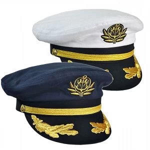 This deluxe adjustable captains yacht cap includes scrambled eggs on the brim and gold embroidered insignia on the cap. Put this cap on and become the ‘Skipper’ marooned on a desert island, and use it to master the mates.