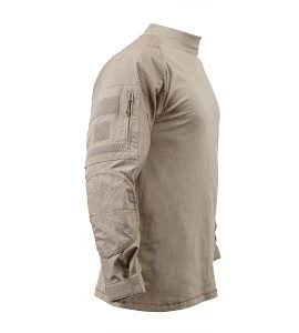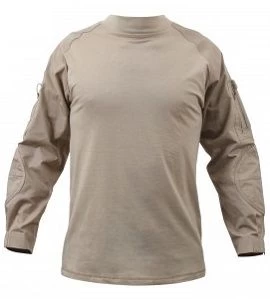 These combat shirts are made for comfort but worn for protection; it is a perfect shirt for military and tactical personnel in the field to wear under hot, heavy body armor and tactical vests. This Combat Shirt is made of a no melt, drip resistant fabric to withstand heat up to 230 degrees Fahrenheit. The shirt has been designed with a lightweight and breathable fabric that will wick moisture away, while keeping you dry. It has zippered sleeve storage pockets, mock turtle neck, anti-abrasion padded elbow patches, gusseted sleeves, glint tape holder for tape, and loop field on sleeve pockets for attaching name, rank & flag patches.