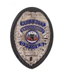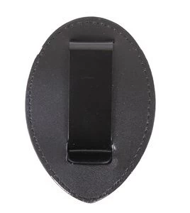 Leather Clip-On Badge Holder. The Leather Clip On Badge Holder features a ‘West Coast Badge’ style and tempered steel clip. Measures 3 3/4′ x 2 5/8′ x 1/4′. Please note badges and chain not included and are sold separately.