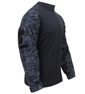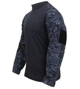 These midnight digital combat shirts are made for comfort but worn for protection. It is a perfect shirt for military and tactical personnel in the field to wear under hot, heavy body armor and tactical vests. This combat shirt is made of a no melt, drip resistant fabric to withstand heat up to 230 degrees Fahrenheit. The lightweight and breathable fabric will wick moisture away, while keeping you dry. Loop on the sleeves for patches and rank.
