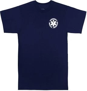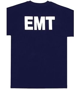 The EMT shirt is 60/40 Polyester/Cotton. The EMT Shirt comes in Navy blue. The EMT Shirt features EMT on the back and features the “Star of Life” EMT Logo on the front left breast.