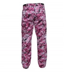 Get outfitted in a legendary pair of military style bdu pants. These pants are sturdily constructed yet also include adjustable waist tabs for a secure fit. These pants feature the famous six pockets, reinforced seat and knees, and drawstring leg closures. They are designed for anyone looking for comfortable, durable, cargo pants with lots of pockets. Fashion meets function with the Pink Digital Camo Tactical BDU Pants.