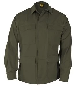 A classic BDU appearance combined with modern tactical functionality, the Poly/Cotton Twill BDU Coat will withstand constant wear and is durable enough for any situation. Based on the traditional U.S. Army BDU design, this Mil-Spec coat features a fused military collar, fused pocket flaps, double reinforced elbows and military-grade pockets, ensuring long-lasting durability. The side seams and sleeves are felled for maximum maneuverability and rip prevention, as well as for optimal comfort. The four front pockets provide ample storage and are secured by button closures, with no zippers or Velcro on the coat. There are drain holes on the bellowed pockets for convenient drainage of sand or moisture as well.