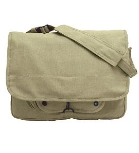 Vintage Canvas Paratrooper Bag offers classic styling and functionality and features 3 inner compartments great for storage of books or gear, 1 outer compartment w/ snaps and a fully adjustable shoulder strap.