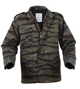 At Army Surplus World we carry M-65 field jackets. Designed to military specifications, the Tiger Stripe Camo field jacket provides durability, warmth and comfort. This coat is constructed with dual-swing shoulders, four front pockets, removable liner and a packable hood. Get geared up with outerwear essentials from Army Surplus World today!
