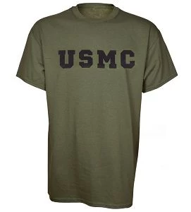 Get a another color on a classic design with this USMC Olive Drab PT T-shirt. Features USMC across the chest and is made of 100% preshrunk cotton.