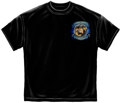Order your black marine corps shirt from army surplus world today. The black marine corps shirt is has a large logo on the back of the shirt and a pocket size logo on the front of the shirt. The black marine corps shirt is printed on a 6.0 oz., heavyweight, 100%cotton, preshrunk t-shirt. The graphics on the black marine corps shirt is superior. Here at army surplus world we have the best black marine corps shirts at the best prices. Order your black marine corps shirt today. Small – 3X.