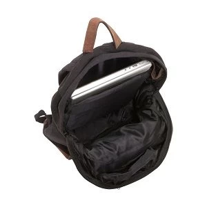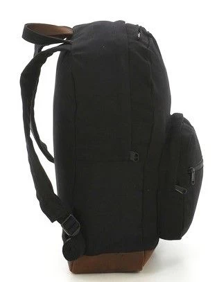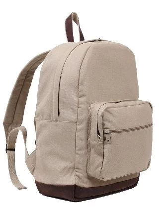 This vintage canvas teardrop back pack is perfect for carrying your things whether they are books, supplies, etc. Made out of heavy weight washed cotton canvas it features a leather bottom. There is a large main compartment with a zippered closure, a cell phone pocket, and a cushioned section perfect for a laptop. Outside is a front zippered pouch with exterior zippered pocket and up top is a hidden top zippered pouch. It is easily carried with the adjustable shoulder straps or the top carry handle.