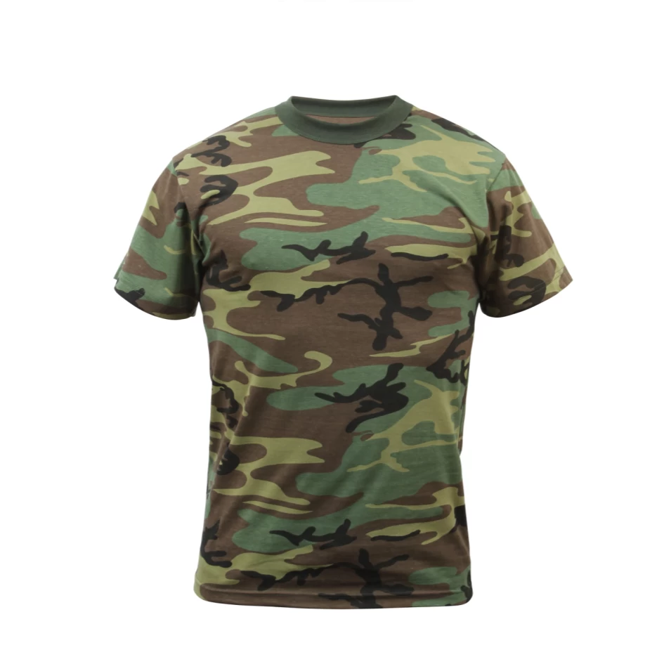 We carry a wide range of camouflage t shirts in many different colors at great prices. The woodland camouflage t shirts are made of a durable poly/cotton blend. The woodland camouflage t shirts are short sleeve with a reinforced neck. The woodland camouflage t shirts are also available in kids sizes as well. Adult Sizes for woodland camouflage t shirts are Small – 7XL.
