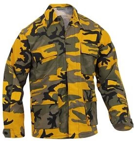 The Yellow Camo B.D.U. Fatigue Shirt is built for comfort, durability, and versatility. The yellow camo BDU shirt can be worn as part of a military uniform or alone as a shirt jacket. Matching pants, t-shirts, hats and more available.